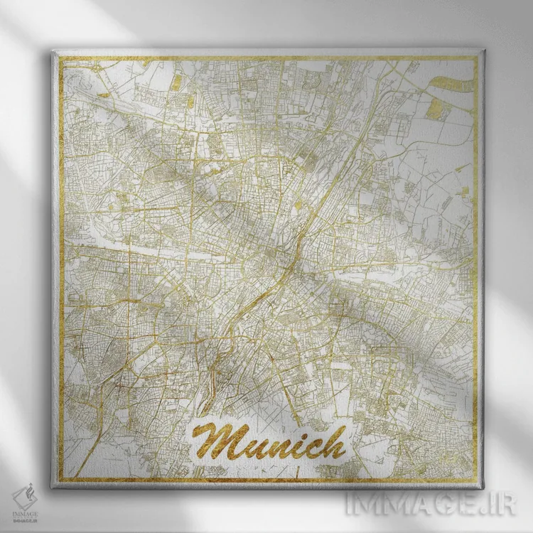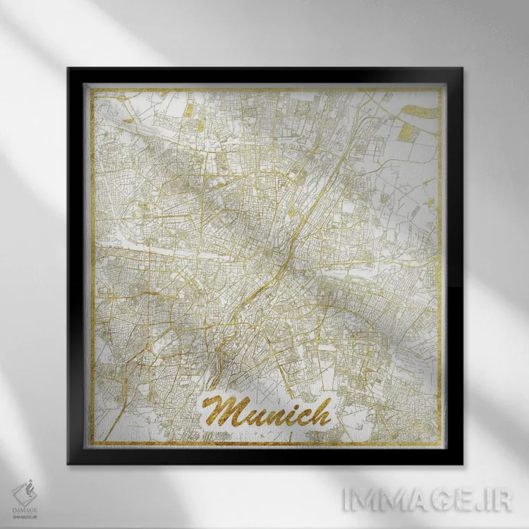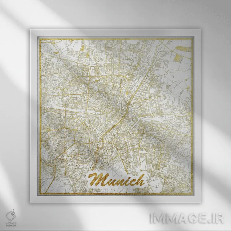 در «نقشه شهری با ورق طلای مونیخ» اثرِ «هوبرت روگوسکی»، فرم و رنگها کنترلشدهاند؛ نتیجه، یک اثر مرتب و خوشنشین برای دیوارهای مینیمال.
