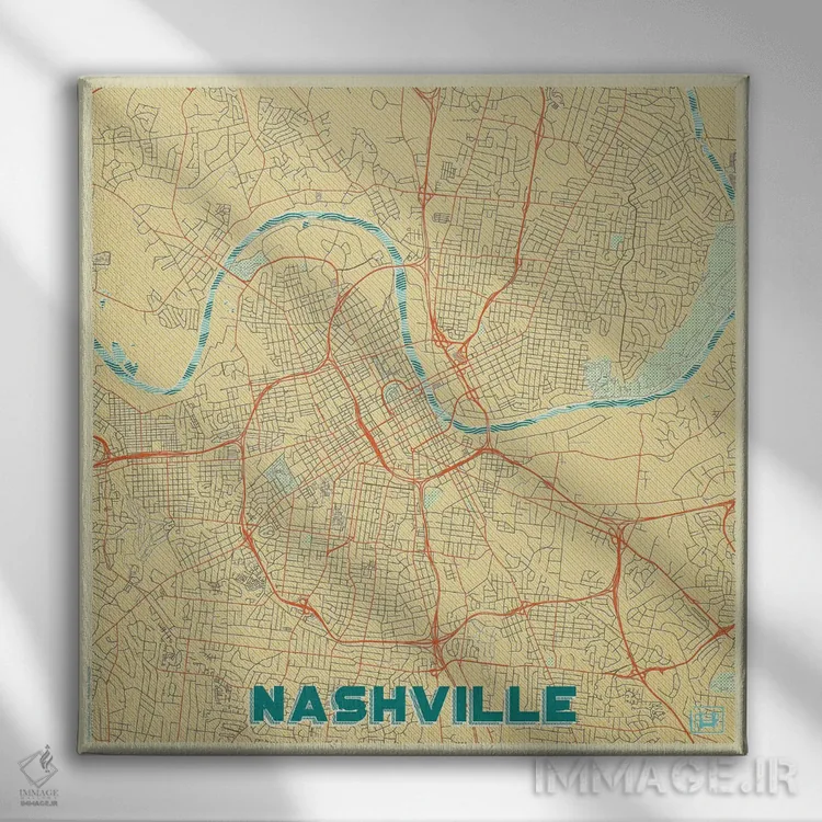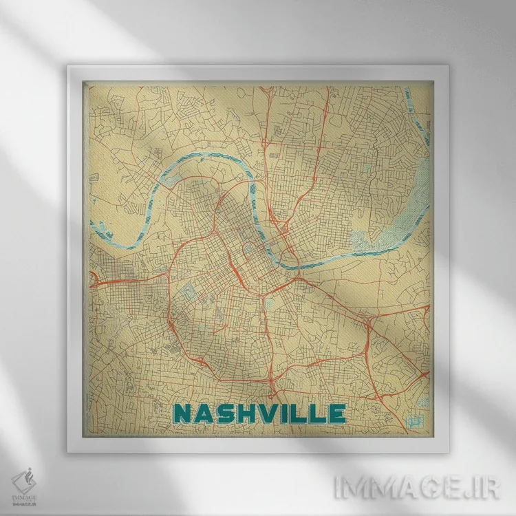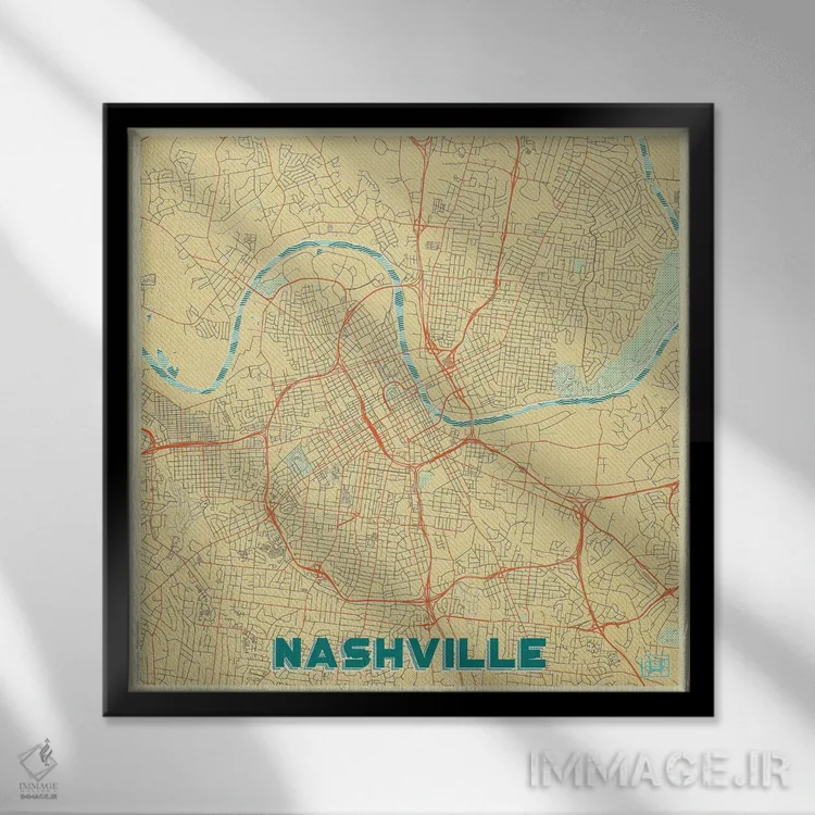 یک انتخاب مدرن، با روایتی مینیمال و مرتب—«نقشه شهری رترو نشویل» اثرِ «هوبرت روگوسکی».
