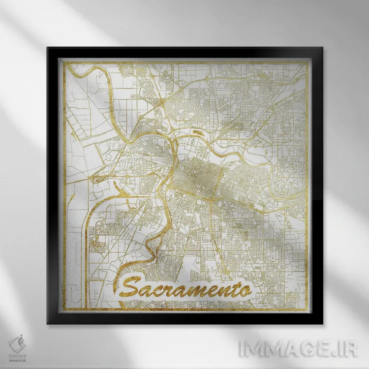 این اثر با عنوان «نقشه طرح شهری با برگ طلا ساکرامنتو» اثرِ «هوبرت روگوسکی»، تمیز و دقیق است؛ مناسب دیوارهای مینیمال.