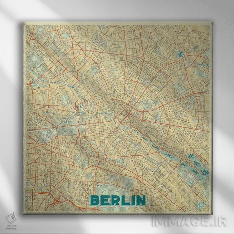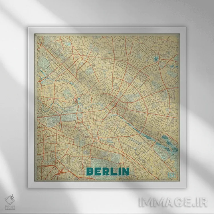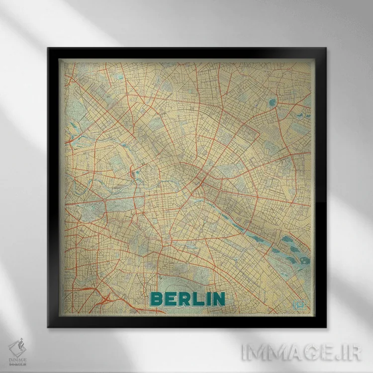 «نقشه طرح شهری رترو برلین» اثرِ «هوبرت روگوسکی» یک قاب شهری و مدرن است؛ موضوعِ این اثر با اجرای هنری، کنار مبلمان ساده خیلی خوب مینشیند.