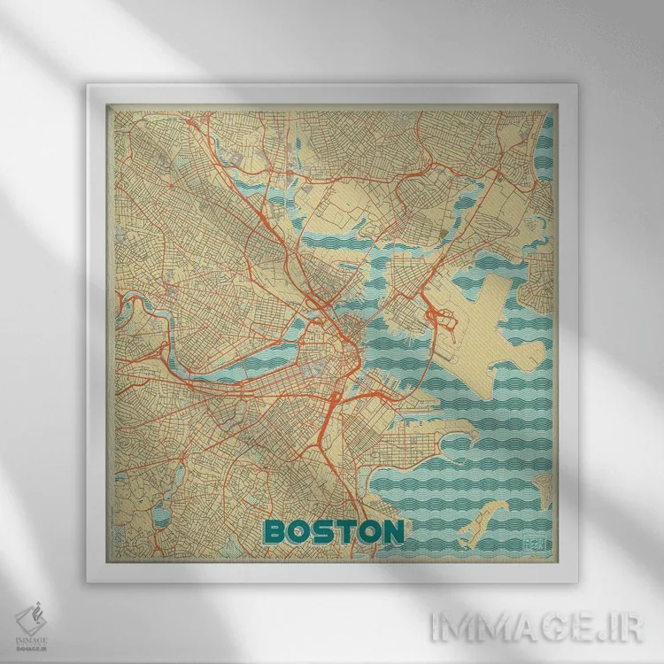 «نقشه طرح شهری رترو بوستون» اثرِ «هوبرت روگوسکی» برای چیدمانهای صنعتی یا مدرنِ شهری هم مینشیند؛ چون تصویر، واضح و امروزی است.