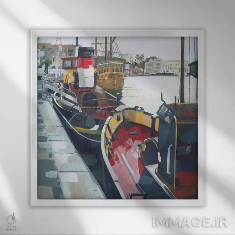 ترکیب این اثر با سبک پرداختِ هنری یعنی طراوتِ کنترلشده؛ دقیقاًً چیزی که یک دیوار شیک لازم دارد—«کشتیهای یدککش در اسکله واپینگ، بریستول» اثرِ «کلر هنلی».