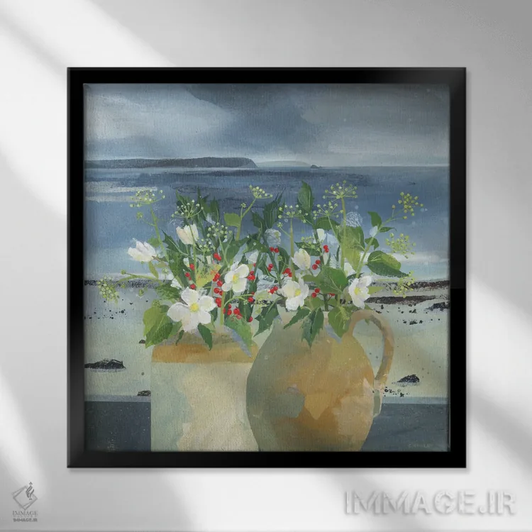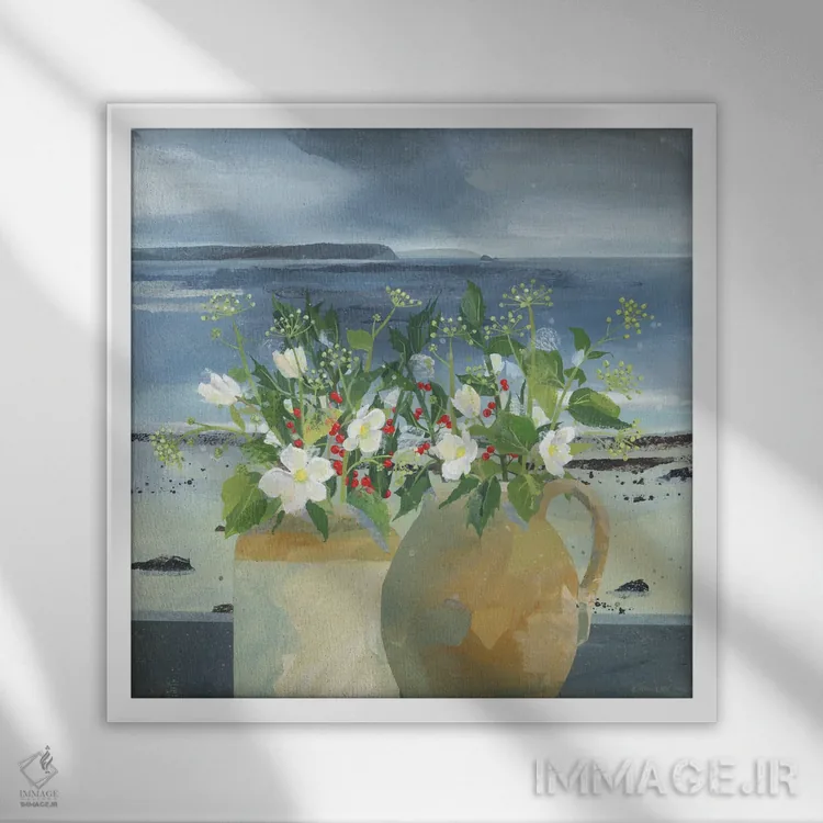 براساس پالت ترکیبی اثر، قاب بلوط روشن (چوبی) پیشنهاد اول است و استخوانی ملایم مکمل. برای سفارشهای پروژهای با ابعاد و قابهای اختصاصی با ایماژ در تماس باشید.
