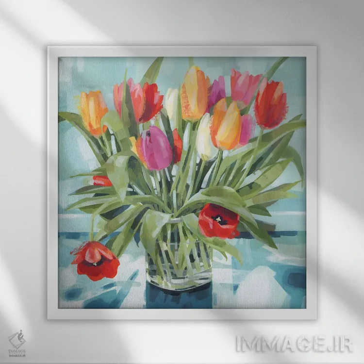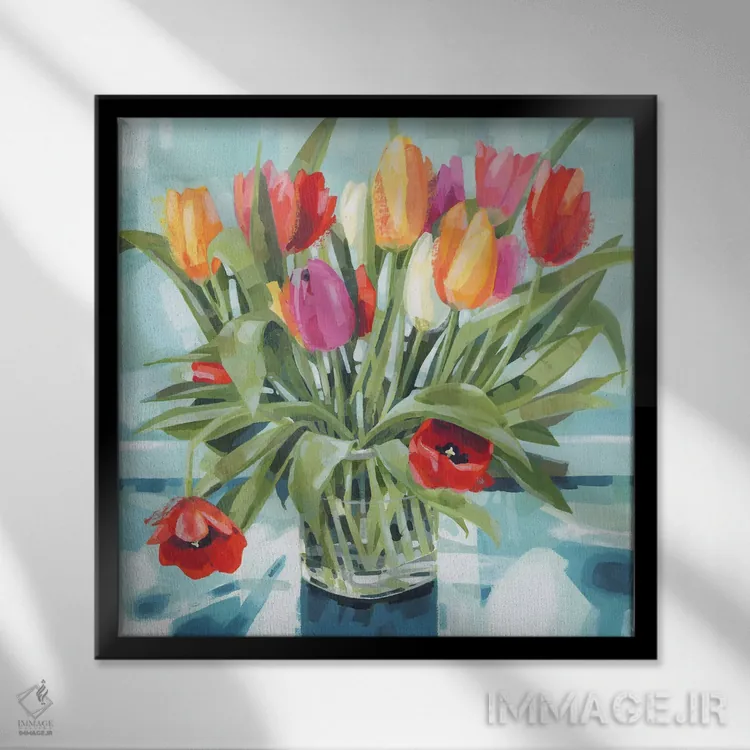 براساس پالت ترکیبی اثر، قاب تیک گرم (چوبی) پیشنهاد اول است و مشکی مات (فریم متوسط) مکمل. برای سفارشهای پروژهای با ابعاد و قابهای اختصاصی با ایماژ در تماس باشید.