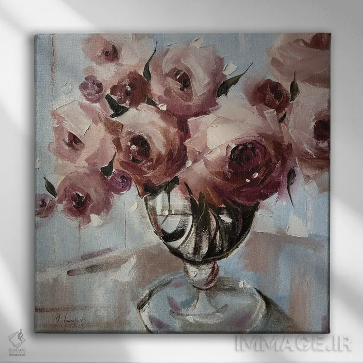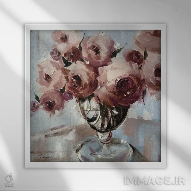 اگر به دکورهای طبیعی علاقه دارید، «دستهای رز صورتی» اثرِ «مارینا هریهورنکو» حس فصل را آرام وارد فضا میکند، برای کنار میز آرایش یا کنسول گزینهٔ مناسبیست. جزئیاتش از نزدیک هم ارزش تماشا دارد.