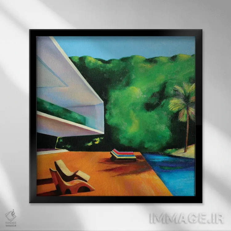 براساس پالت ترکیبی اثر، قاب تیک گرم (چوبی) پیشنهاد اول است و مشکی مات (فریم متوسط) مکمل. برای سفارشهای پروژهای با ابعاد و قابهای اختصاصی با ایماژ در تماس باشید.