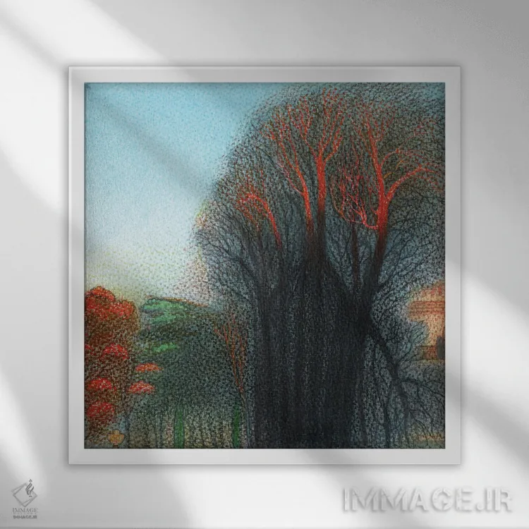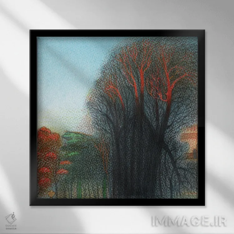 براساس پالت گرم اثر، قاب تیک گرم (چوبی) پیشنهاد اول است و مشکی مات (فریم متوسط) مکمل. برای سفارشهای پروژهای با ابعاد و قابهای اختصاصی با ایماژ در تماس باشید.