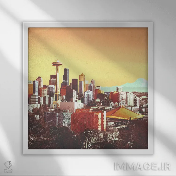 این تابلو با عنوان «سیاتل رنگی (آمریکا)» اثرِ «فایو بای فایو کالکتیو» فضا را روشنتر و زندهتر نشان میدهد؛ برای کنار کتابخانه یا میز کار پیشنهاد میشود. با مبلمان خنثی، تضاد دلنشینی میسازد.