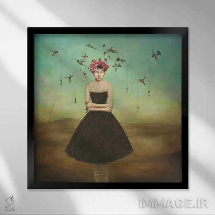 براساس پالت ترکیبی اثر، قاب بلوط روشن (چوبی) پیشنهاد اول است و استخوانی ملایم مکمل. برای سفارشهای پروژهای با ابعاد و قابهای اختصاصی با ایماژ در تماس باشید.