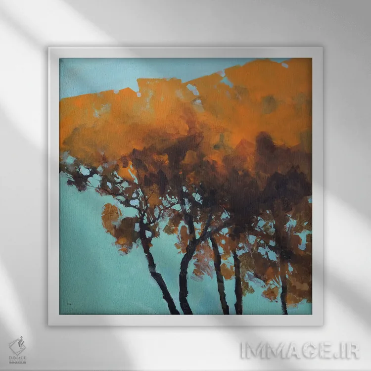براساس پالت ترکیبی اثر، قاب تیک گرم (چوبی) پیشنهاد اول است و مشکی مات (فریم متوسط) مکمل. برای سفارشهای پروژهای با ابعاد و قابهای اختصاصی با ایماژ در تماس باشید.