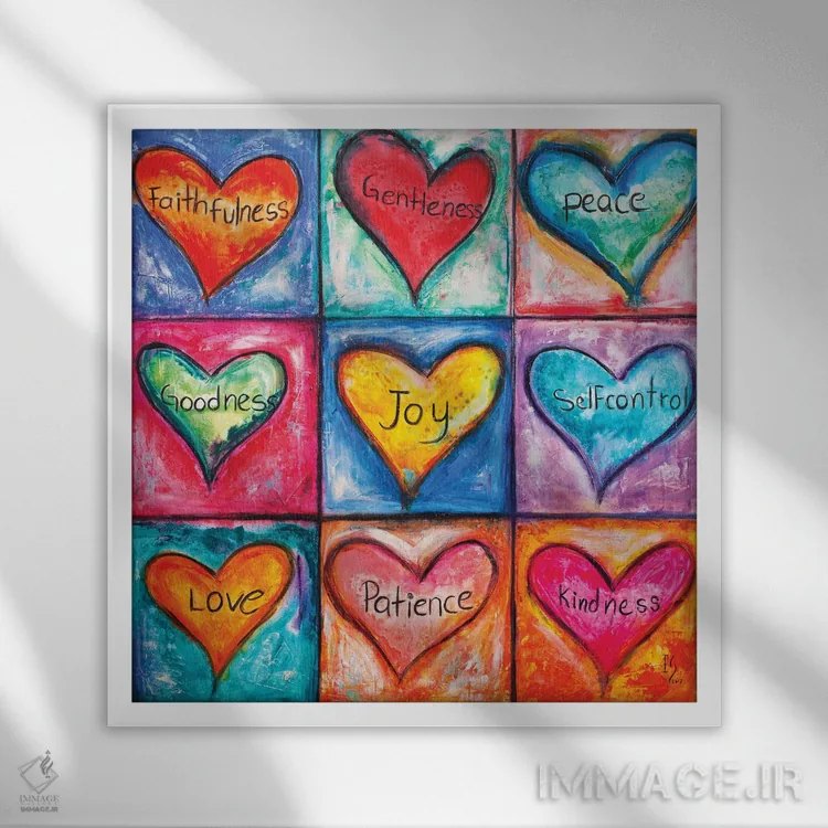در «میوه روح» اثرِ «ایوان گوادراما»، کلمات نقش تصویر را بازی میکنند؛ انتخابی خوب برای اتاق کار، استودیو یا کافهاستایل.