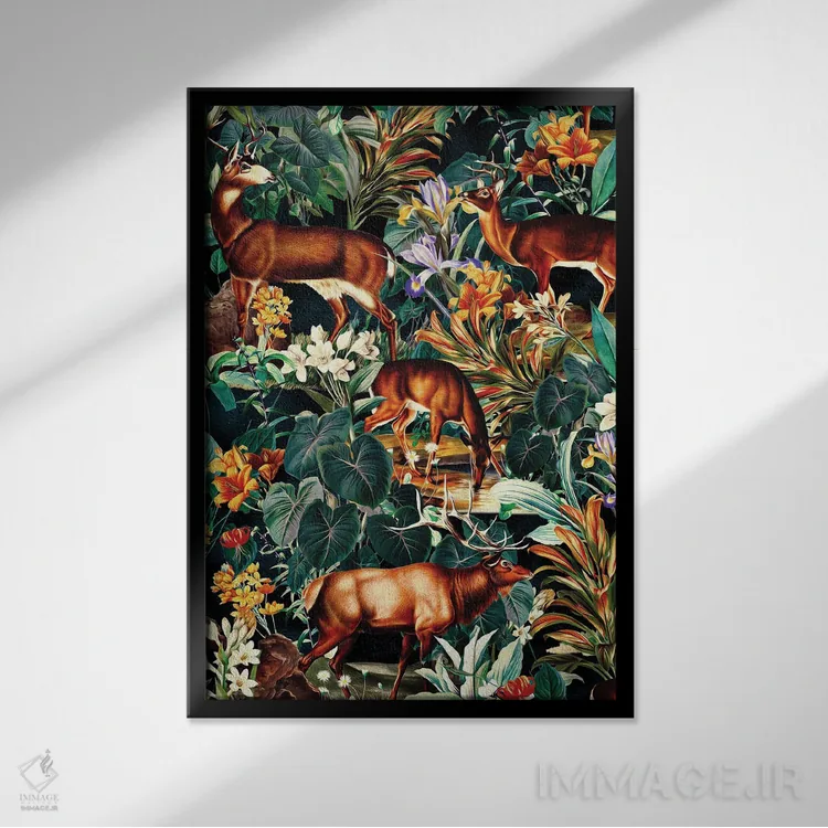 براساس پالت ترکیبی اثر، قاب تیک گرم (چوبی) پیشنهاد اول است و مشکی مات (فریم متوسط) مکمل.