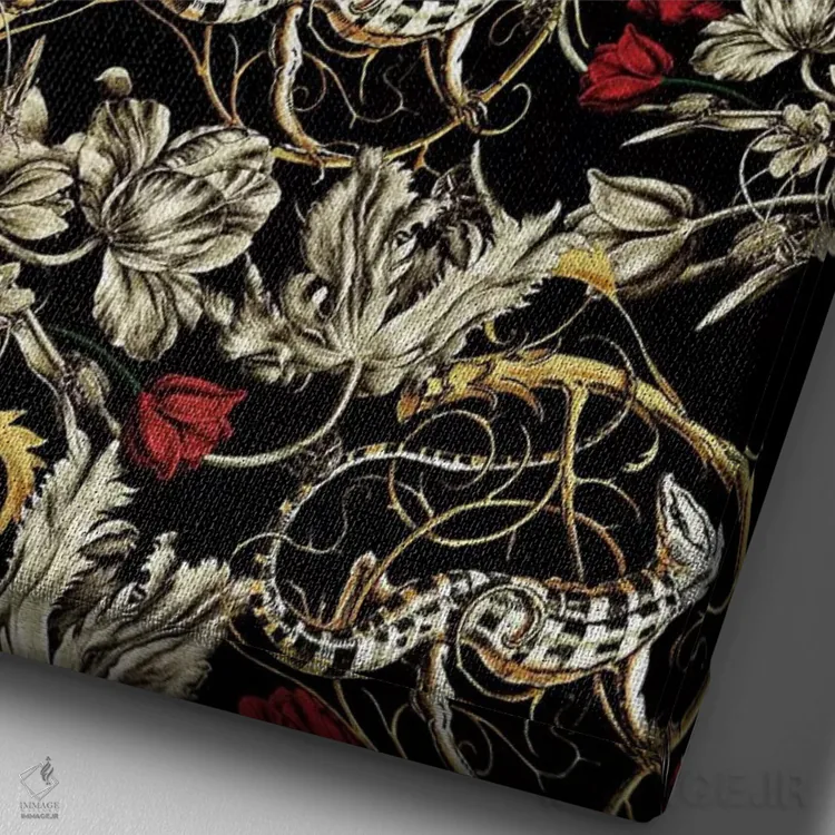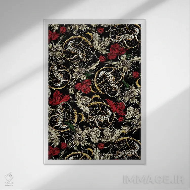 «طرح گلدار و مارمولک» اثرِ «برجو کورکمازیورک» یک قاب دکوراتیوِ گرم و دلنشین است؛ این اثر در اجرای پرداختِ هنری، فضا را نرمتر و صمیمیتر نشان میدهد.