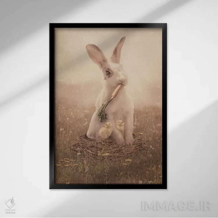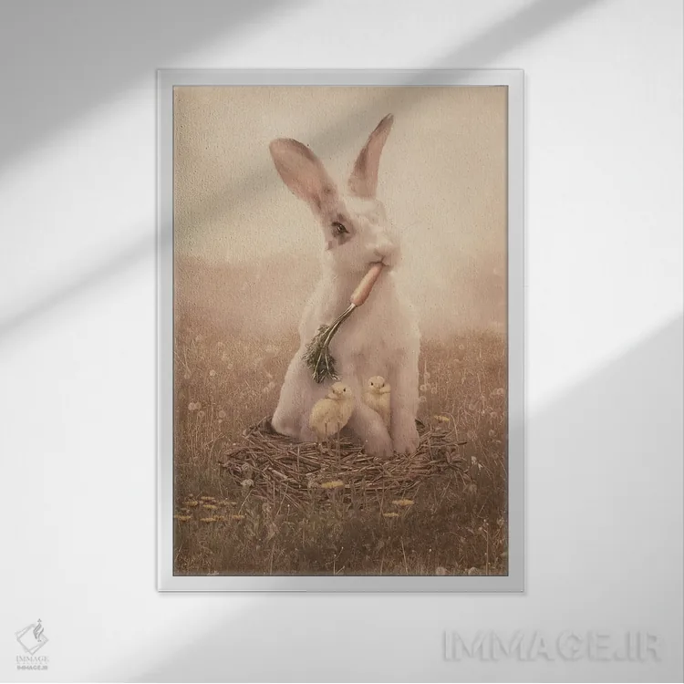 براساس پالت گرم اثر، قاب بلوط روشن (چوبی) پیشنهاد اول است و استخوانی ملایم مکمل. برای سفارشهای پروژهای با ابعاد و قابهای اختصاصی با ایماژ در تماس باشید.
