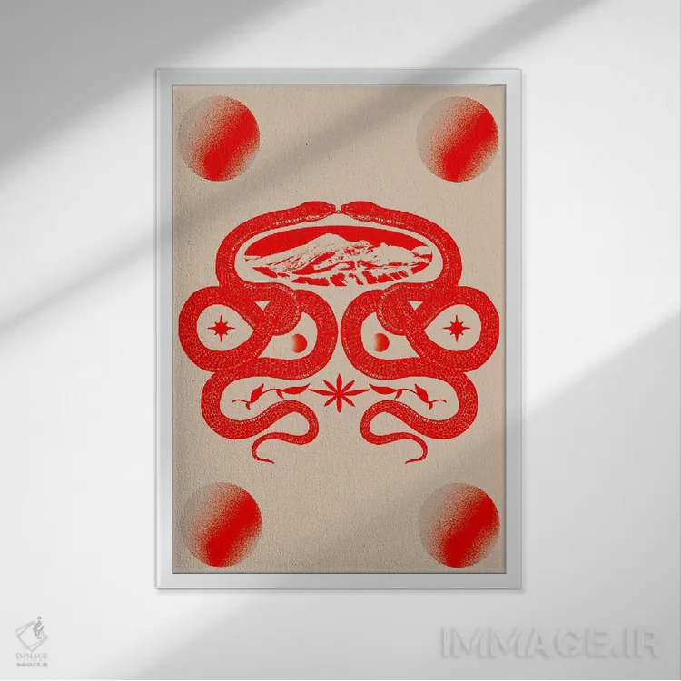 براساس پالت گرم اثر، قاب بلوط روشن (چوبی) پیشنهاد اول است و استخوانی ملایم مکمل. برای سفارشهای پروژهای با ابعاد و قابهای اختصاصی با ایماژ در تماس باشید.