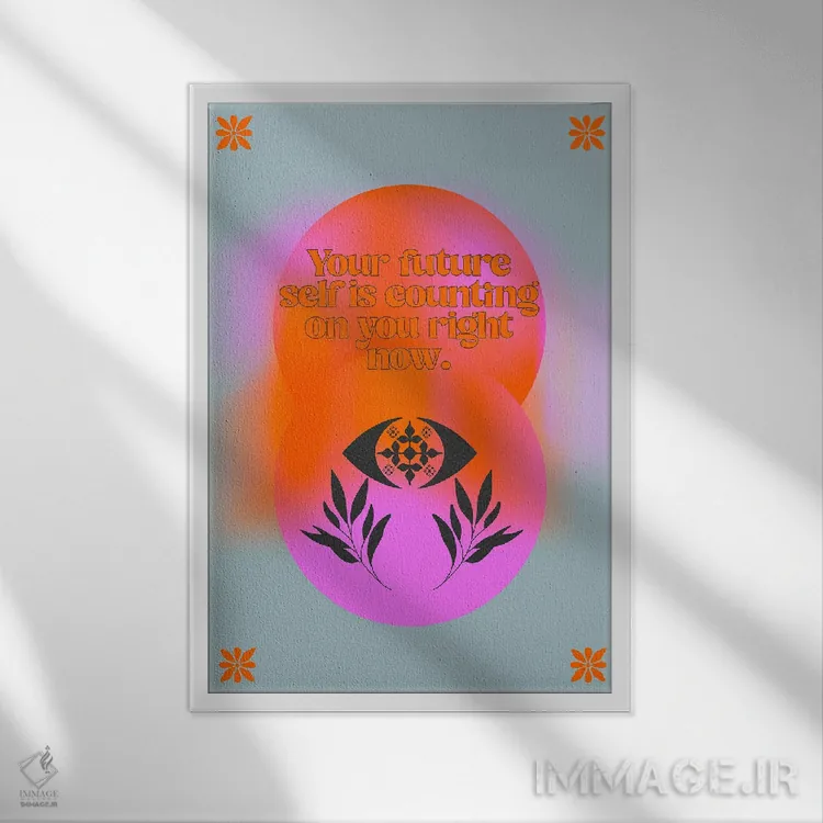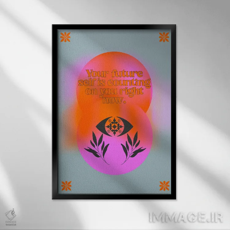 «خود آیندهات» اثرِ «بستورلد اثر سیرا کیلن» با تایپوگرافیِ کنترلشده، روی دیوار خوب مینشیند؛ برای کنار کتابخانه، میز کار یا راهروهای باریک عالی است.