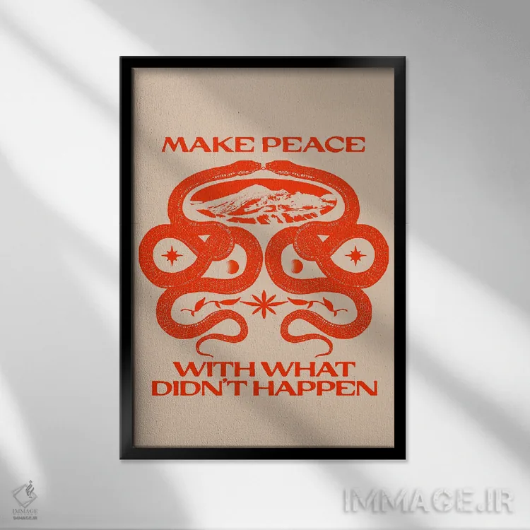 «صلح برقرار کن» اثرِ «بستورلد اثر سیرا کیلن» میتواند گرما و شخصیت به فضا اضافه کند؛ برای راهروها و ورودیهای گرم پیشنهاد میشود. با قاب چوبی یا مشکی، حس مرتبتری پیدا میکند.