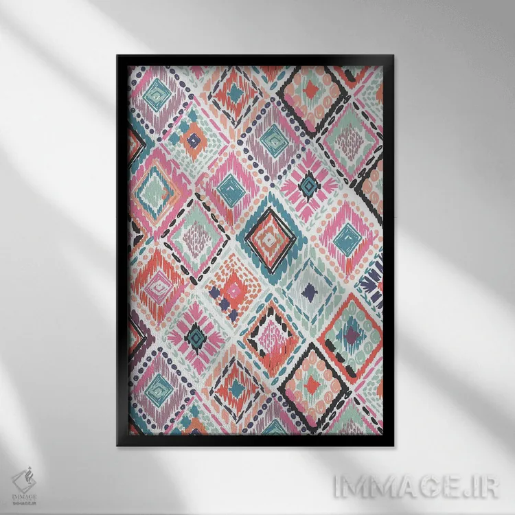 براساس پالت ترکیبی اثر، قاب تیک گرم (چوبی) پیشنهاد اول است و مشکی مات (فریم متوسط) مکمل. برای سفارشهای پروژهای با ابعاد و قابهای اختصاصی با ایماژ در تماس باشید.