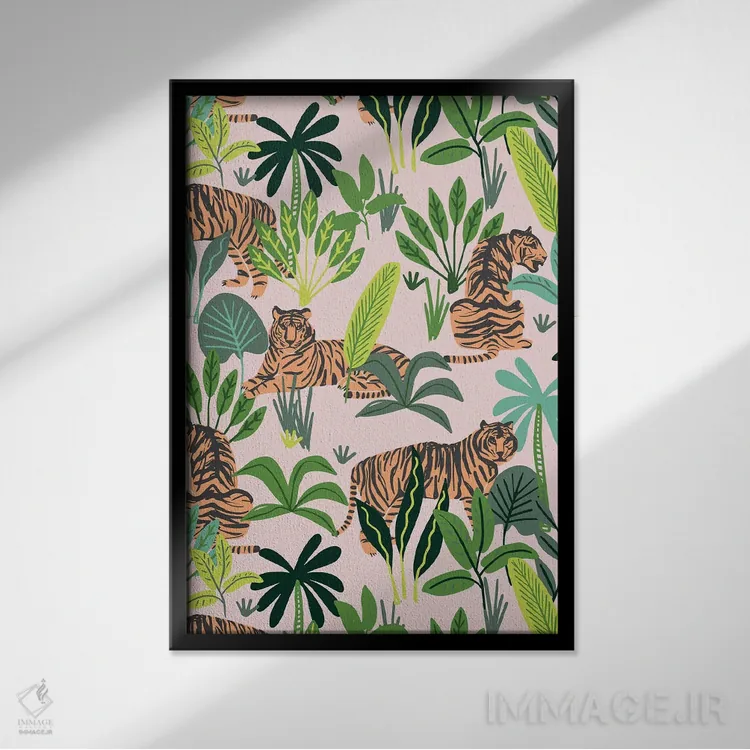 براساس پالت ترکیبی اثر، قاب تیک گرم (چوبی) پیشنهاد اول است و مشکی مات (فریم متوسط) مکمل.
