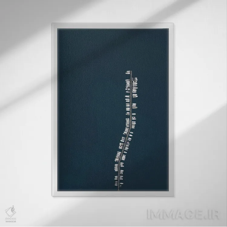 براساس پالت سرد اثر، قاب سفید مات (فریم باریک) پیشنهاد اول است و نقرهای برسخورده (متالیک) مکمل. برای سفارشهای پروژهای با ابعاد و قابهای اختصاصی با ایماژ در تماس باشید.