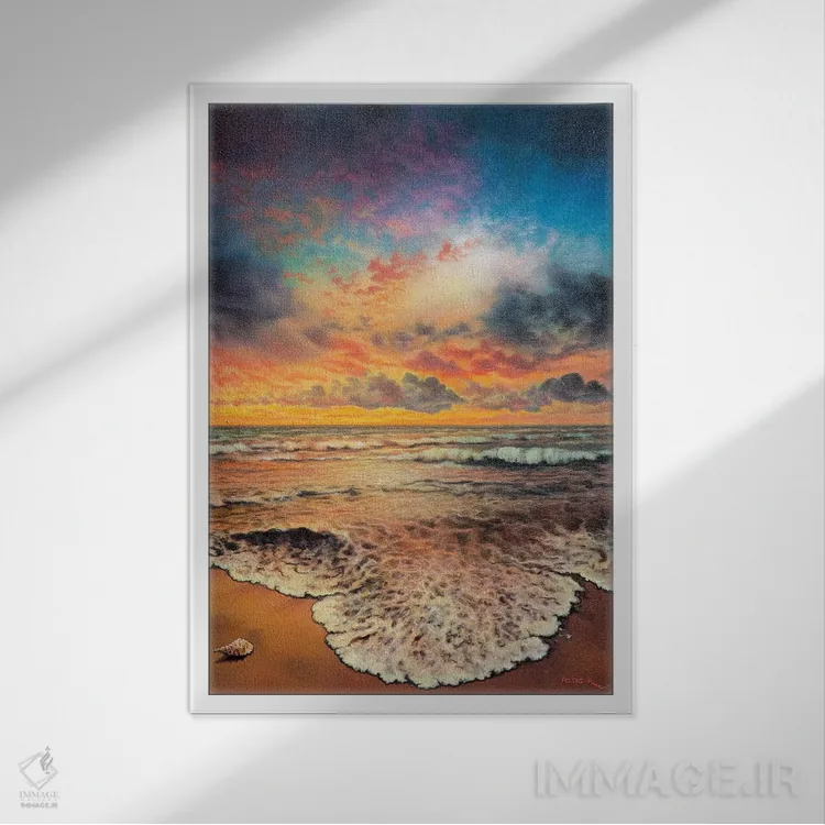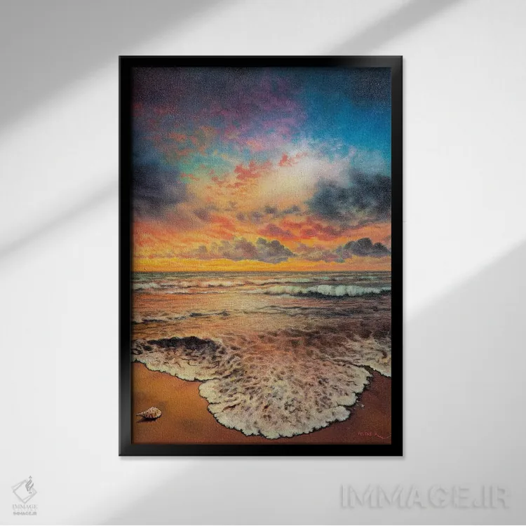 براساس پالت ترکیبی اثر، قاب تیک گرم (چوبی) پیشنهاد اول است و مشکی مات (فریم متوسط) مکمل. برای سفارشهای پروژهای با ابعاد و قابهای اختصاصی با ایماژ در تماس باشید.