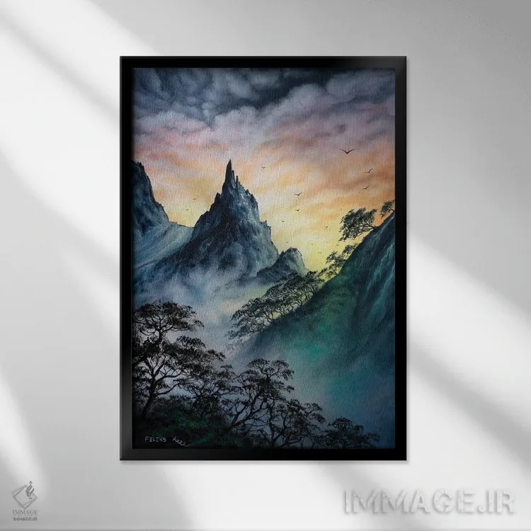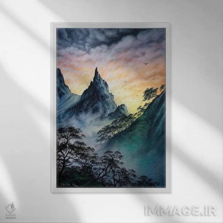 براساس پالت ترکیبی اثر، قاب تیک گرم (چوبی) پیشنهاد اول است و مشکی مات (فریم متوسط) مکمل. برای سفارشهای پروژهای با ابعاد و قابهای اختصاصی با ایماژ در تماس باشید.