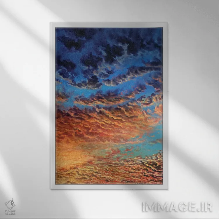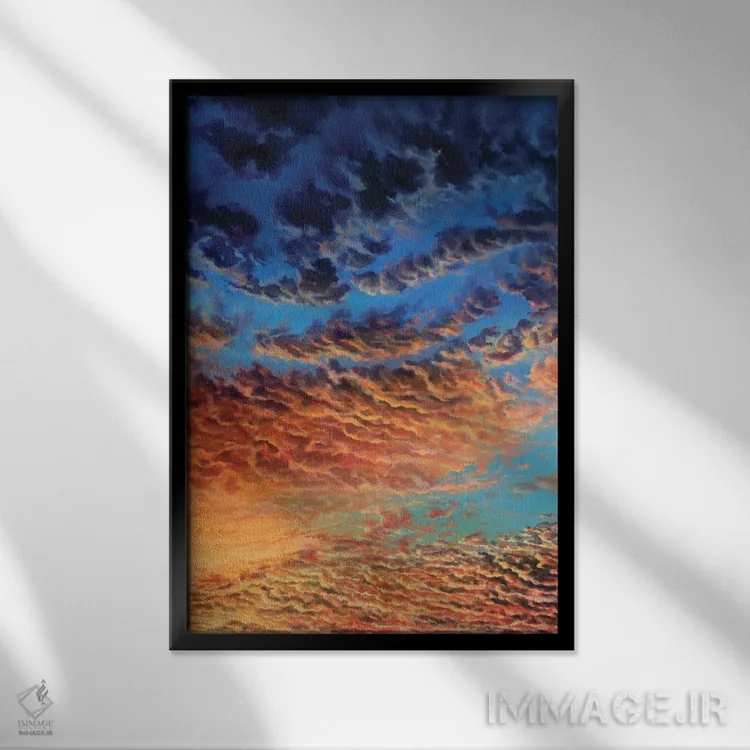 براساس پالت ترکیبی اثر، قاب تیک گرم (چوبی) پیشنهاد اول است و مشکی مات (فریم متوسط) مکمل. برای سفارشهای پروژهای با ابعاد و قابهای اختصاصی با ایماژ در تماس باشید.