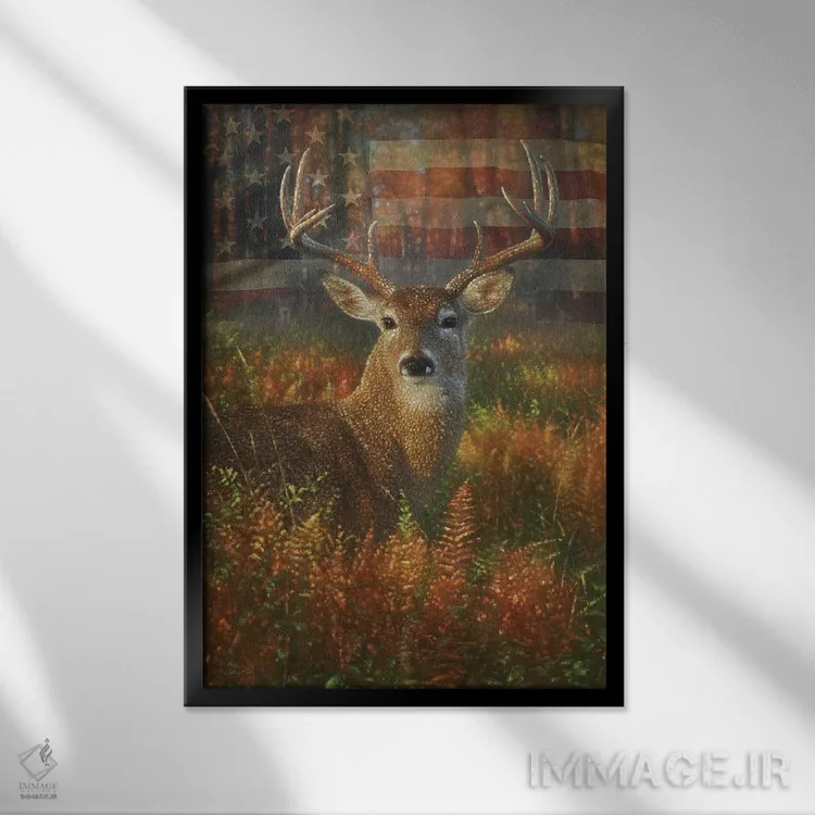 تابلو دکوراتیو گوزن شاخ دار پاییزی ایالات متحده اثر کالین بوگل