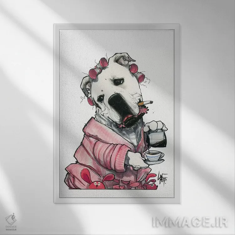 برای دکورهای صمیمی، «چه خبره؟ (اصطلاح طنزآمیز)» اثرِ «کاریکاتورهای سگ (استودیو تخصصی کاریکاتور حیوانات)» به فضا، گرمیِ ملایم اضافه میکند؛ برای فضاهای روستیک یا بوهو انتخابی خوشسلیقه است. حسش صمیمی است، اما کیفیتش جدی و خوشپرداخت.
