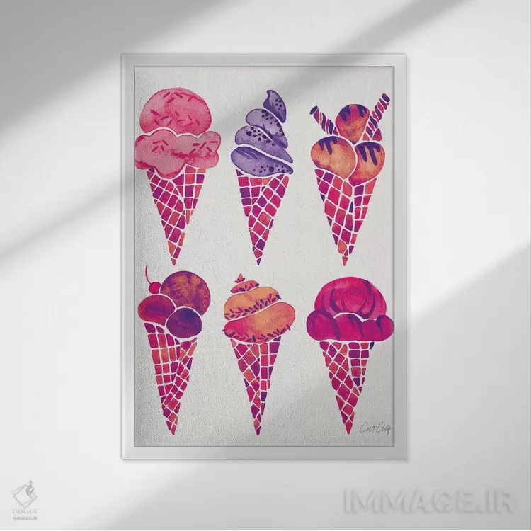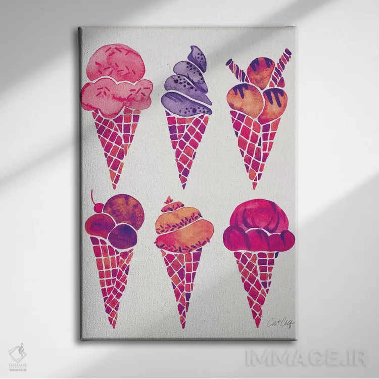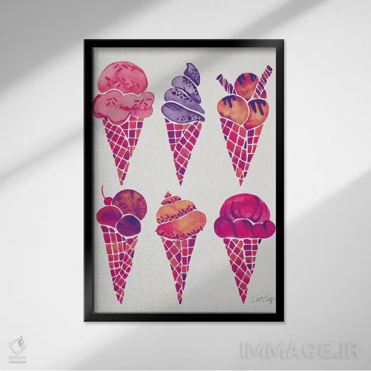 تابلو مینیمال بستنی قیفی صورتی پررنگ اثر کت کوکیلت