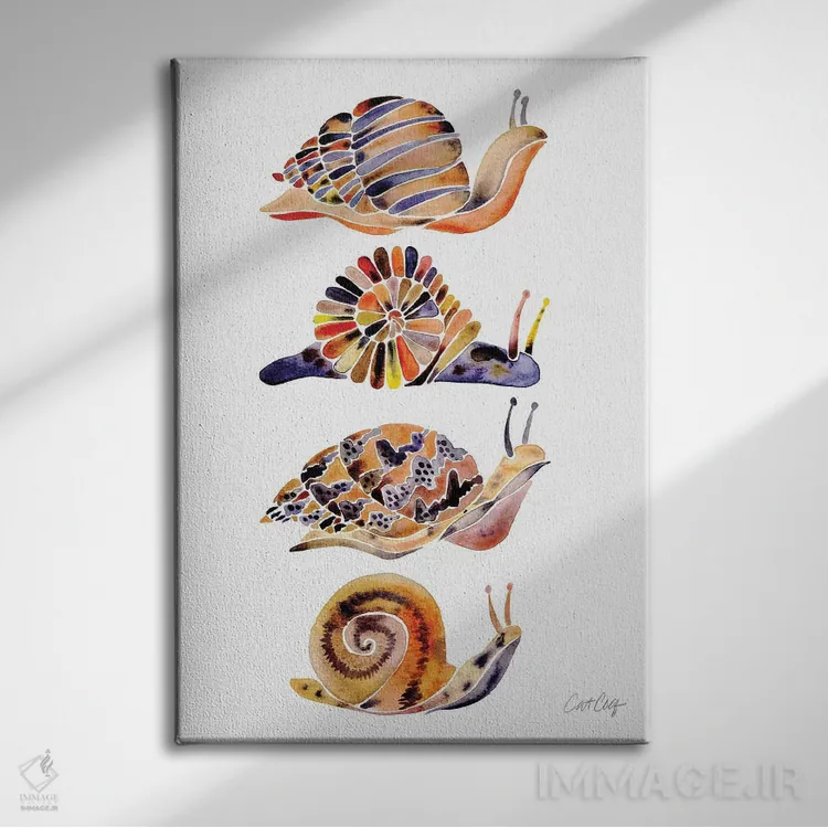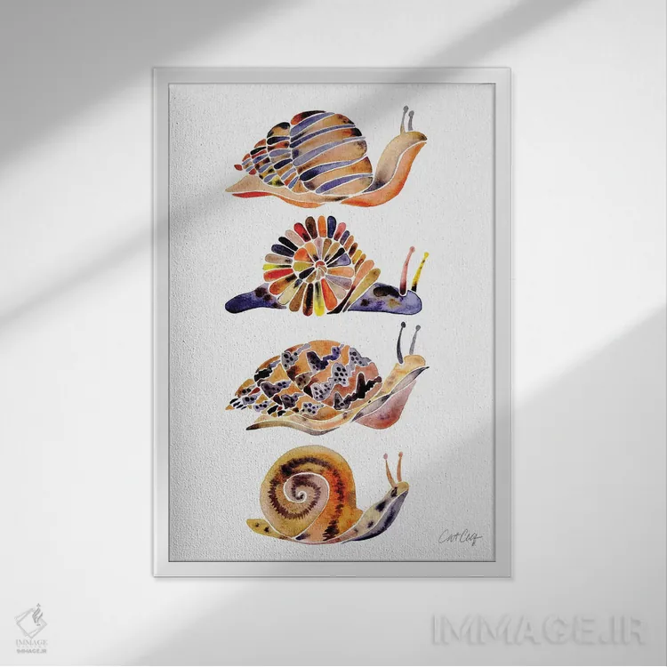 این اثر با عنوان «مجموعه حلزون» اثرِ «کت کوکیلت» در کنار رنگهای خنثی، تضاد دلچسبی میسازد؛ برای دیوار کنار میز کار انتخابی خوشسلیقه است. به دیوار، قصه میدهد—اما قصهای آرام و شیک.