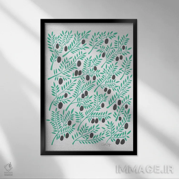 تابلو شاخههای زیتون فیروزهای مشکی اثر کت کوکیلت