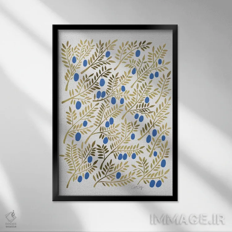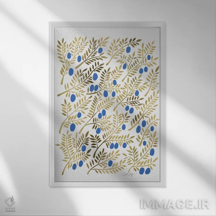 تابلو شاخههای زیتون طلایی آبی اثر کت کوکیلت