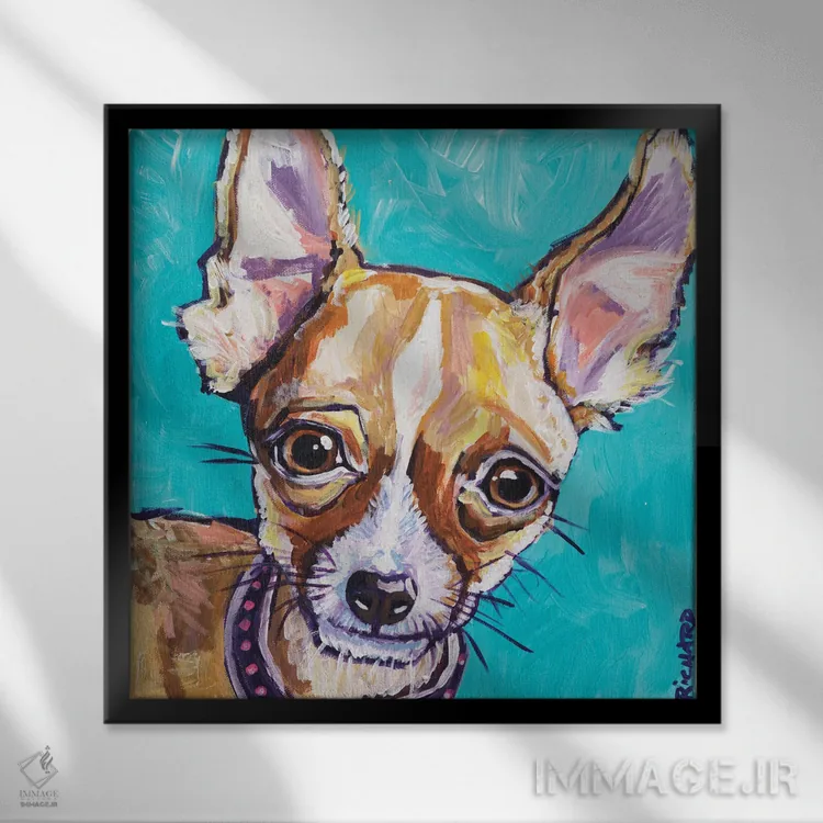 اگر به آثار حیوانات علاقه دارید، «چیواوا» اثرِ «ایلین ریچارد» به دیوار، انرژیِ نرم و زنده میدهد، برای نشیمنهای خانوادگی گزینهٔ مناسبیست. با نورپردازی نقطهای، جذابتر هم میشود.