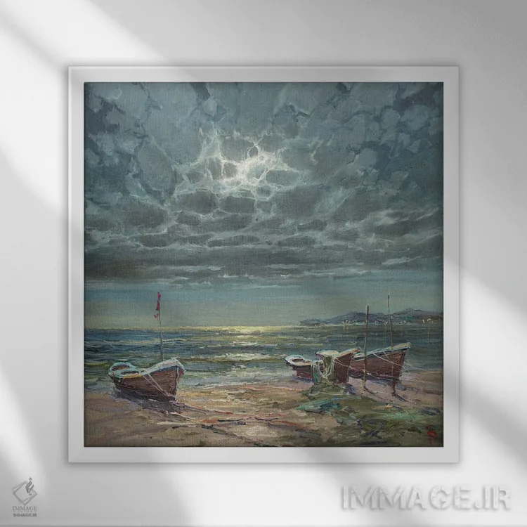 تابلو دکوراتیو قایق های ماهی گیری زیر نور ماه اثر ایگور پوزدف