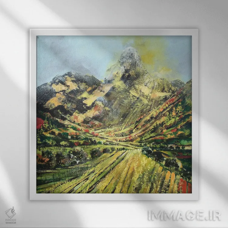 براساس پالت ترکیبی اثر، قاب بلوط روشن (چوبی) پیشنهاد اول است و استخوانی ملایم مکمل. برای سفارشهای پروژهای با ابعاد و قابهای اختصاصی با ایماژ در تماس باشید.