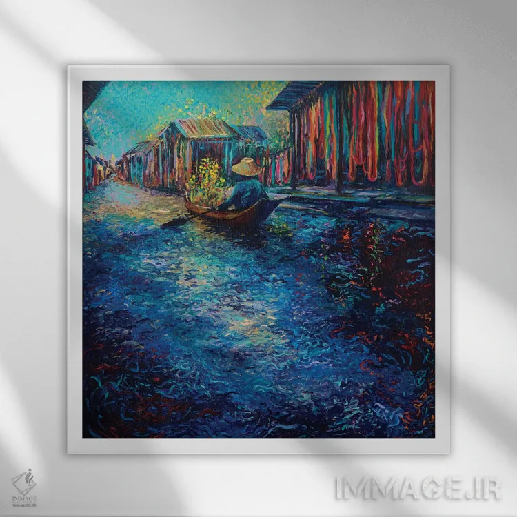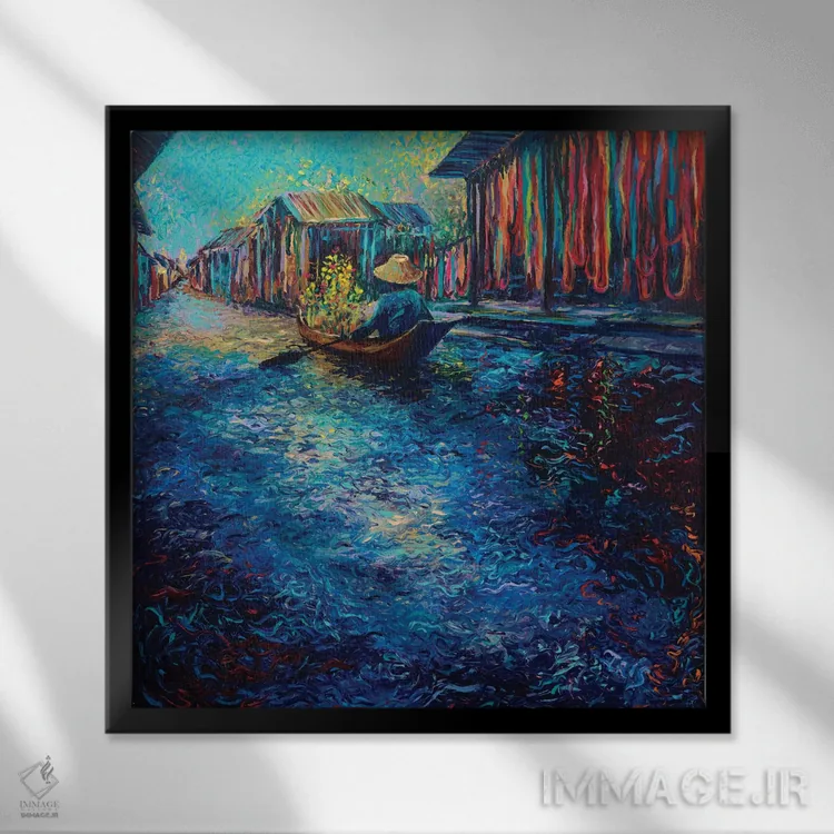 بوم گالری ایماژ طوری طراحی شده که اثر روی دیوار «پرداختشده» و حرفهای دیده شود—نه پرزرقوبرقِ بیپایه؛ بلکه دقیق و خوشپرداخت. بافت ظریف کنواس باعث میشود حس اثر هنری را در نگاه نزدیک نگه میدارد بدون اغراق؛ فقط دقیقتر. با کنترل تونها، تعادل بهتری بین نور و رنگ ایجاد میکند. حاصل کار، یک تابلو خوشنشین است که هم از دور اثرگذار است و هم از نزدیک خوشخوان؛ و اگر بخواهید، میتوان چیدمان را برای گالریوال هم پیشنهاد داد.