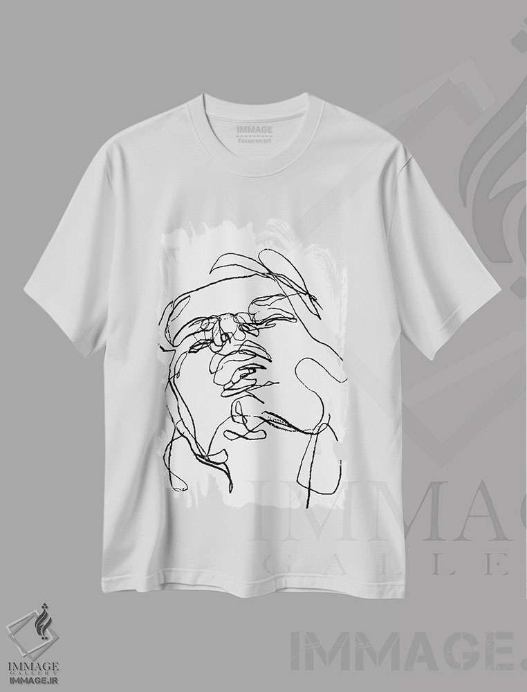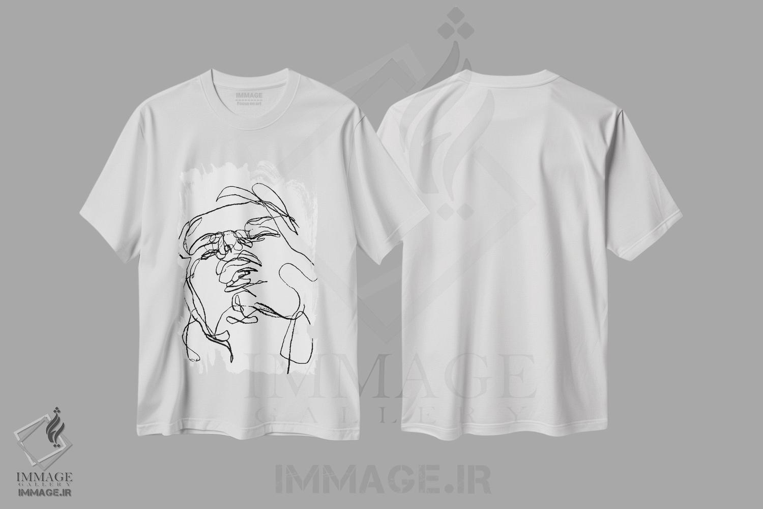 تیشرت طرح دار زن با چهره سیاه و سفید، آرت خطی اثر آرت میرانو | فروشگاه ایماژ