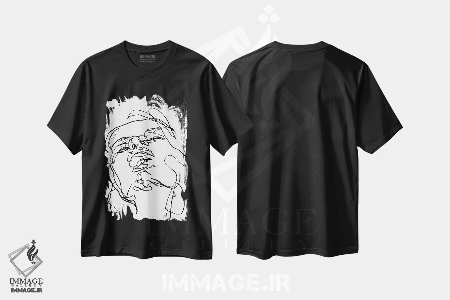 تیشرت طرح دار زن با چهره سیاه و سفید، آرت خطی اثر آرت میرانو | immage.ir