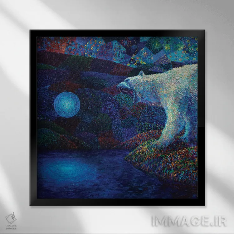 براساس پالت ترکیبی اثر، قاب تیک گرم (چوبی) پیشنهاد اول است و مشکی مات (فریم متوسط) مکمل. برای سفارشهای پروژهای با ابعاد و قابهای اختصاصی با ایماژ در تماس باشید.