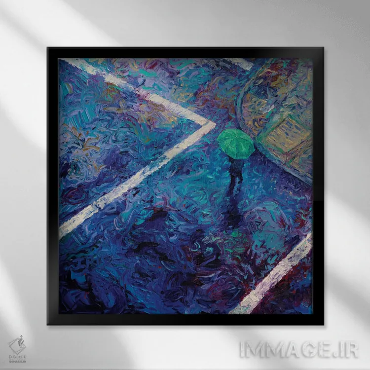 براساس پالت ترکیبی اثر، قاب تیک گرم (چوبی) پیشنهاد اول است و مشکی مات (فریم متوسط) مکمل. برای سفارشهای پروژهای با ابعاد و قابهای اختصاصی با ایماژ در تماس باشید.