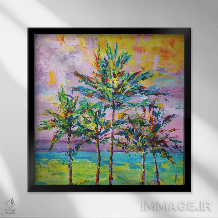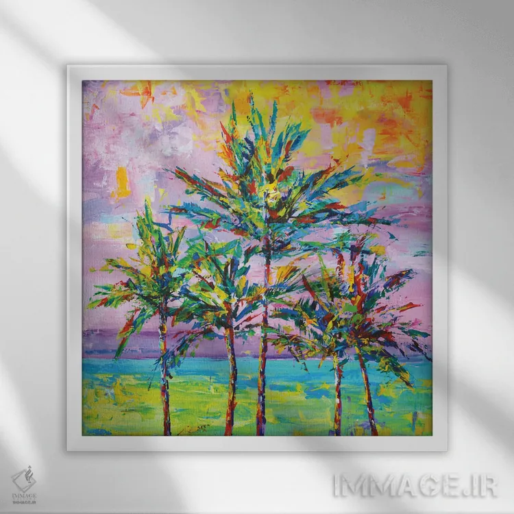 در «نخلهای کالیفرنیا ۲»، اثرِ «ایرینا کاستسووا» این اثر را با حس ساحلی ارائه میکند؛ برای چیدمانهای ساده و روشن، انتخابی مطمئن و هماهنگپذیر است.