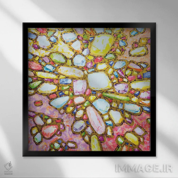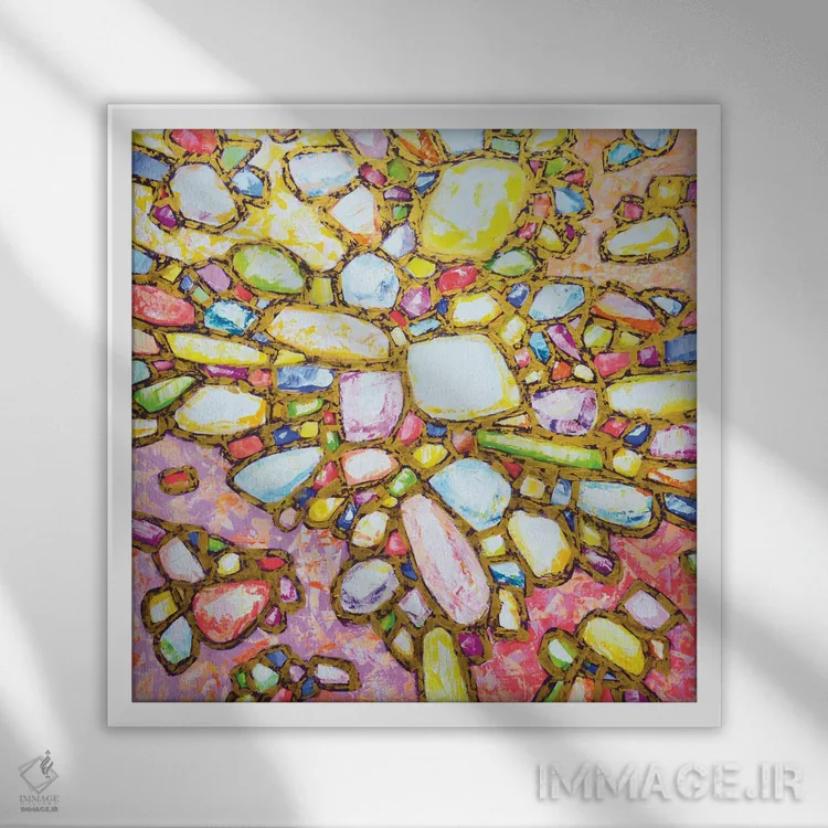 براساس پالت ترکیبی اثر، قاب تیک گرم (چوبی) پیشنهاد اول است و مشکی مات (فریم متوسط) مکمل. برای سفارشهای پروژهای با ابعاد و قابهای اختصاصی با ایماژ در تماس باشید.
