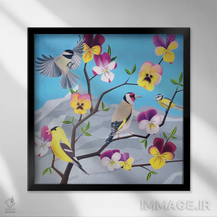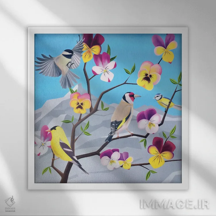 براساس پالت ترکیبی اثر، قاب تیک گرم (چوبی) پیشنهاد اول است و مشکی مات (فریم متوسط) مکمل. برای سفارشهای پروژهای با ابعاد و قابهای اختصاصی با ایماژ در تماس باشید.