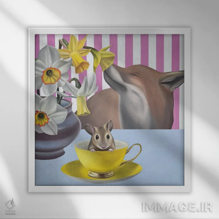 تابلو بهار بر روی میزم اثر ایلدزه اوس - نمای قاب‌دار سفید