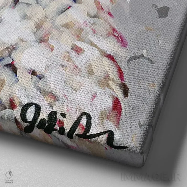 بوم گالری ایماژ نسخهی چیدماناتیوِ باکیفیت از یک اثر هنری است؛ روی کنواس سفیدِ یکدست و بدون اسید با فرآیند چاپ حرفهای جیکلی (Giclée) و کنترل دقیق تونها با جوهرهای آرشیویِ حرفهای برای لایههای رنگی خواناتر؛ حس نهایی نزدیکتر به ارائهی گالریوار است؛ نه صرفاً یک تصویر. اسمبل تمیز و آمادهی نصب؛ کشیدگی استاندارد روی کلاف و یراق مناسب.