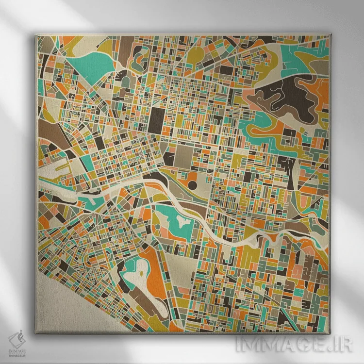 تابلو نقشه انتزاعی شهر ملبورن اثر جازبری بلو (هنرمند مدرن/برند هنری)