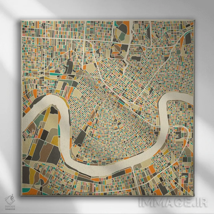 تابلو نقشه انتزاعی شهر نیواورلئان اثر جازبری بلو (هنرمند مدرن/برند هنری)