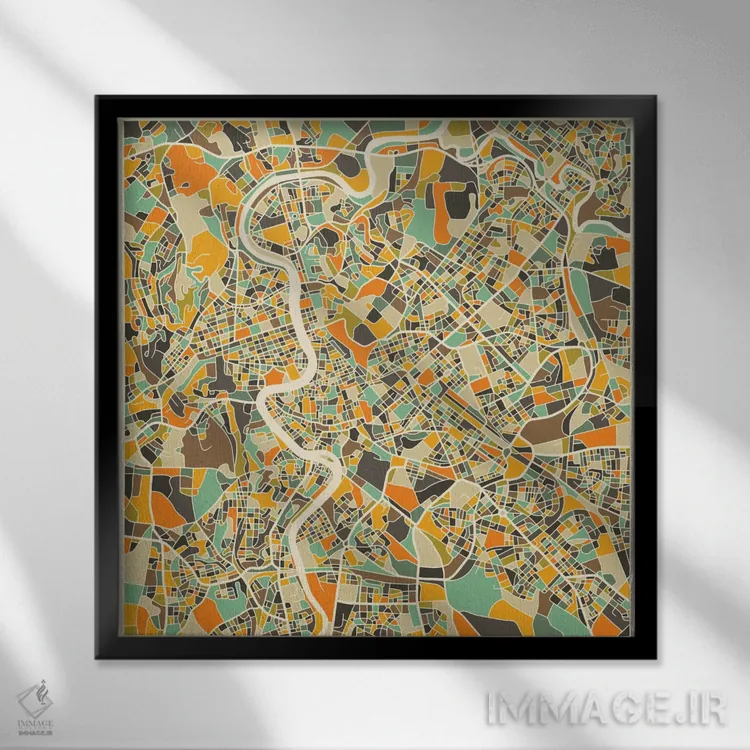 تابلو نقشه انتزاعی شهر رم اثر جازبری بلو (هنرمند مدرن/برند هنری)