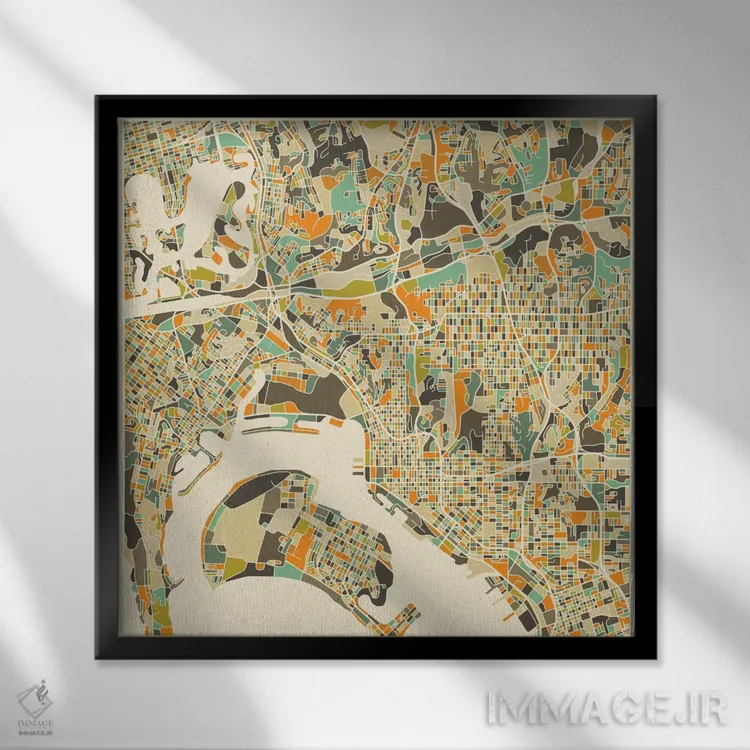 تابلو نقشه انتزاعی شهر سن دیگو اثر جازبری بلو (هنرمند مدرن/برند هنری)